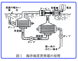 ここでは、無尽蔵に存在する海洋の熱エネルギーを有効に利用する発電システムである海洋温度差発電
